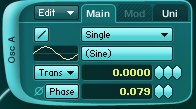 When you open an instance of Absynth, go to the ‘Patch’ tab by clicking the button on the top menu bar. There will be a single oscillator active here, generating a simple sine tone. Click on the staircase button and it will become a straight line, indicating high-quality mode.
